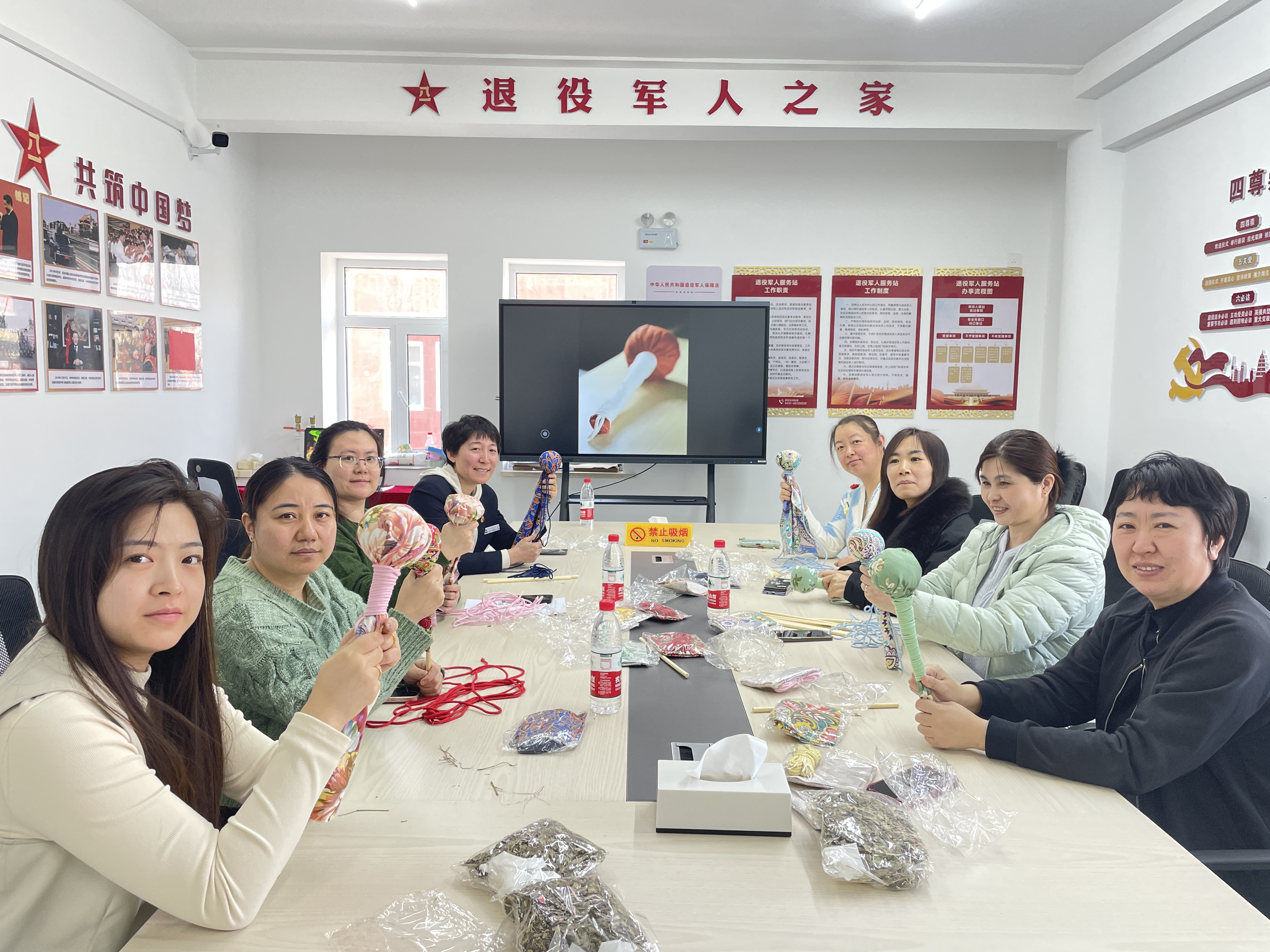 本次活动特邀吉林省睿哲思心理咨询机构的王广慧老师为社区工作人员开展心理拓展活动。活动现场,王老师通过轻松有趣的互动游戏,引导大家释放压力、舒缓情绪,学习情绪管理和压力应对技巧,帮助大家在繁忙的工作和生活中保持积极乐观的心态,提升心理健康意识。随后,在老师的指导下,大家利用木棒、毛线绳、老粗布、艾草包等材料,开始制作艾草锤,现场气氛轻松愉快。