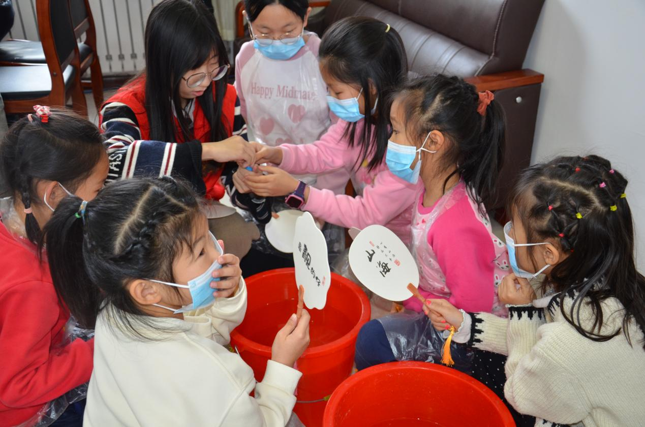 随后,孩子们在志愿者老师的带领下,开始制作漆扇、进行航天卫星组装、制作手工模型以及使用天文望远镜观察月球等。
