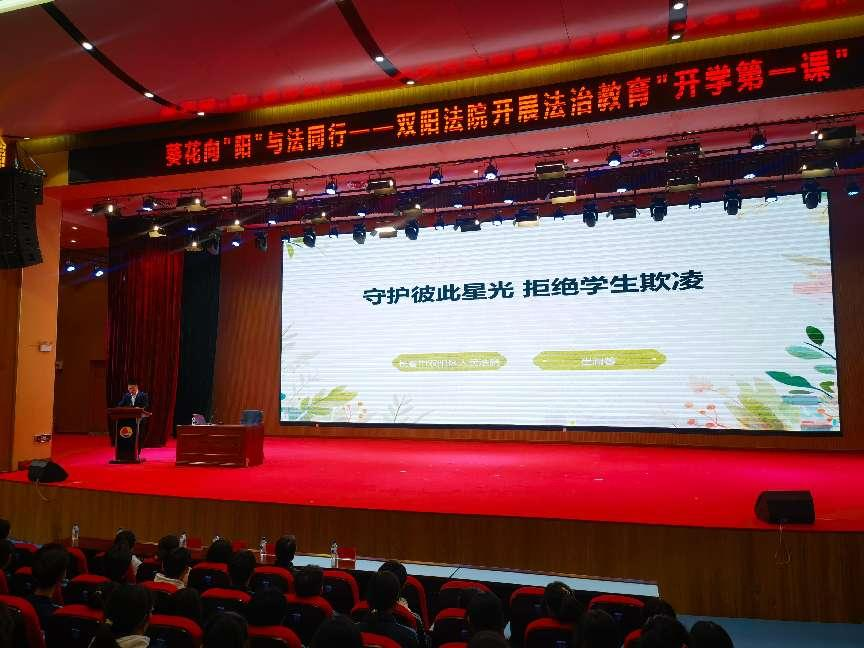 为贯彻落实吉林省教育厅等五部门关于法治教育的相关要求,双阳区教育局积极探索,主动与政法部门对接,在各社区教育学校成功举办了“葵花向阳,与法同行”法治教育主题活动。2月24日下午,在长春市双阳区云山街道清江社区第一社区教育学校(长春市第一五〇中学)设立主会场,全区24所社区教育学校同步设立分会场,通过在线直播方式,让法治教育惠及广大师生。